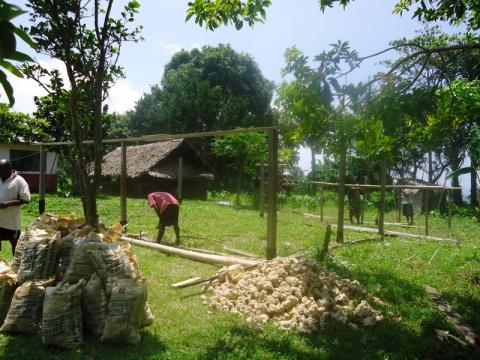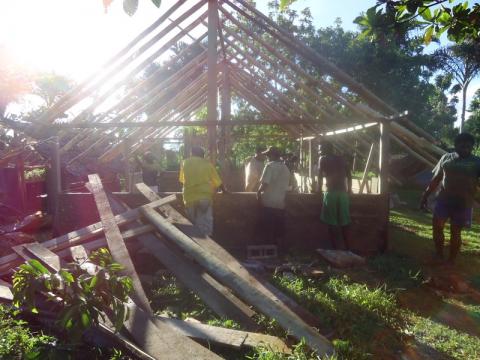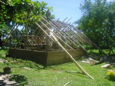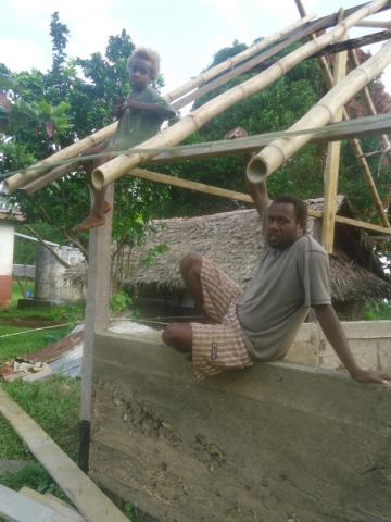 On arriving to site, I found that my house was comprised of 8 sticks poking out of the ground. Every volunteer is supposed to have their own house, so Peace Corps told my village they had a week to finish building mine before they pulled me out and found me a new site. The process is still ongoing and has taken more than a week, but through the mistake, I've been able to help build my own house from the ground up, as well as interact with my community in a way I never otherwise would have been able to. My house is also made out of half modern, half custom materials, ideal for Vanuatu weather. It's concrete floor, half bamboo walls, and Natangora leaf thatched roof will keep the house cool during sweltering days. Which, in my opinion, makes my house well worth the wait. Below are the pictures that illustrate the journey of my kitchen and my house in their construction.