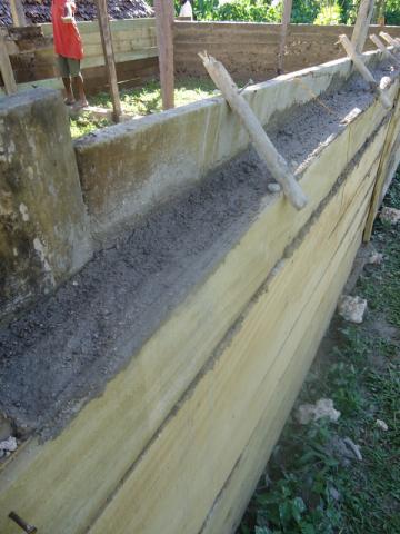 They removed wood from part of the school to temporarily hold the cement walls until they dried