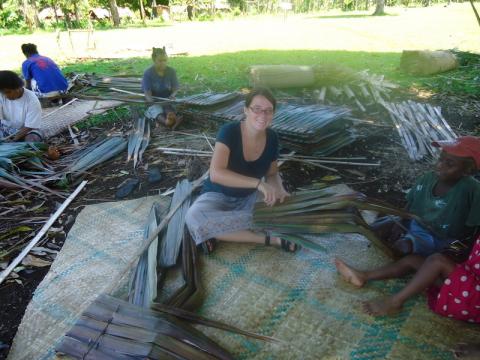 Some Mama's thatching up pieces of my roof. It's made from Natangora tree leaves and is basically sewn together.